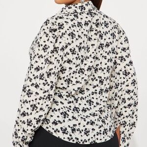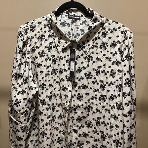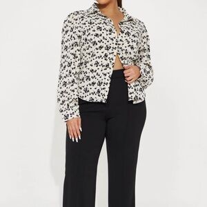 Fashion Nova button-up shirt with gorgeous black floral setail on white shirt. Perfect for business or casual wear! NWT