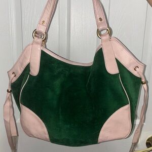Y2K VINTAGE Juicy Couture RICH Green PLUSH VELOUR AND PINK LEATHER TRIM DETAIL DAYDREAMER Shoulder Bag Purse handbag