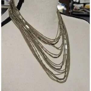 Vintage KRAMER GOLD TONE MULTI STRAND 19"-22" NECKLACE Chain Bib Layer Statement