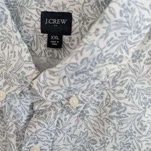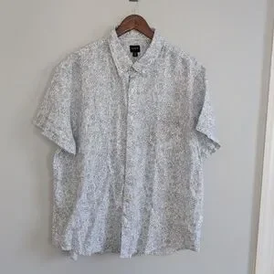 Men's J.Crew Linen Cotton Blend White Floral Light Blue XXL Short Sleeve