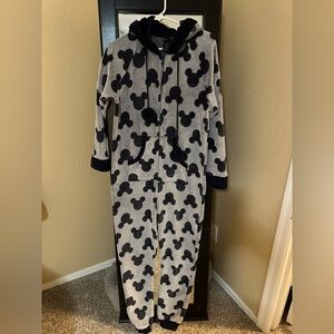 Disney Mickey Mouse Gray Fleece Onesie Pajamas Women’s Medium Cozy Lounge
