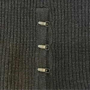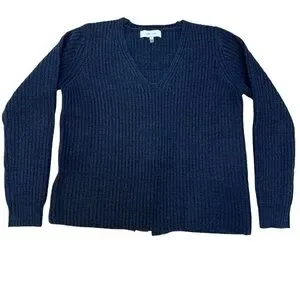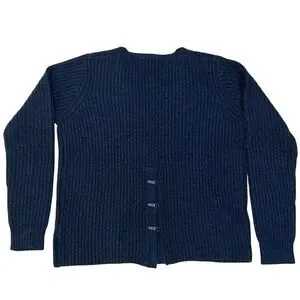 I'm not really sure why I'm selling this one. I like it, I wear it, I just need more room in my closet so this cutie got pulled. It's so comfy and one of my favorite travelling sweaters. I've removed any piling that there was which wasn't much at all. The details in the back are really cute and make this just a little more special than a basic navy sweater. I think this would fit up to a medium. You'll love it as much as I have.