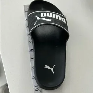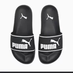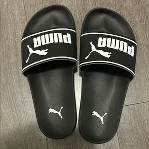 Comfortable Puma slides. Sleek black design with logo.