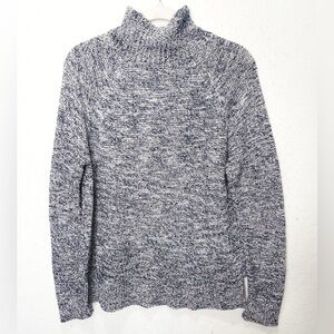 Madewell Mock Turtleneck Knit Long Sleeve Sweater Black White G0443 Size Medium