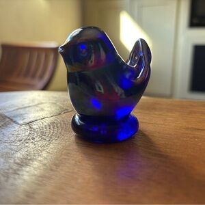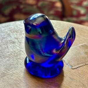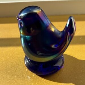 Leo Ward “Bluebird of Happiness” Iridescent Blue Glass Figurine signed & dated