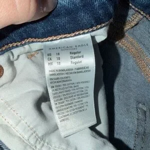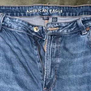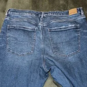Trendy blue cropped jeans with a distressed hem. Perfect for casual wear. Comfortable and stylish. 30in inseam