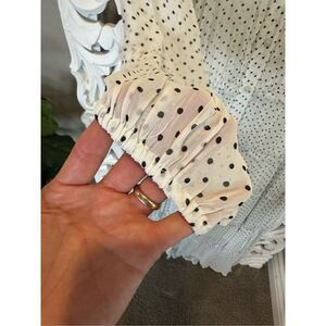 Float through your day in this effortlessly chic polka dot maxi dress. Featuring a relaxed silhouette, delicate ruffles, and long sleeves with a touch of volume, this dress exudes a breezy elegance perfect for any occasion. The classic black and white polka dot print adds a playful yet sophisticated touch. Dress it up with heels for a special event or keep it casual with sandals for a charming everyday look.