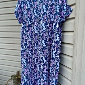 Lilly Pulitzer Navy and Pink Sea Life Dress nwot XXL leopards t shirt dress