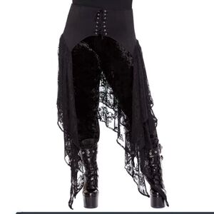 Killstar Visions Lace Skirt women's size medium. Lace up open front. Handkerchief hem. Long maxi length. The top is slightly elastic with adjustable waist circumference.