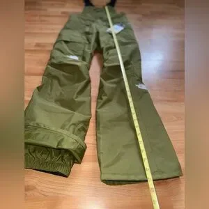 Durable olive green snow bib by The North Face. Ideal for winter sports.