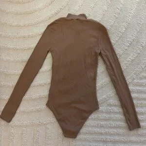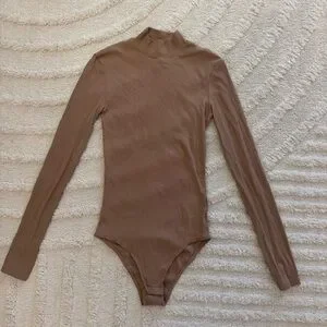 H&M Tan Ribbed Long Sleeve Turtle Neck Bodysuit