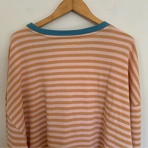 NWOT $98 Free People Classic Striped Oversized Crew Pullover Sweater Latte Combo