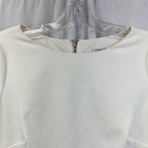 Calvin Klein Sheath Dress Long Flare Sleeve Knee Length Cream Zip Size 2 New