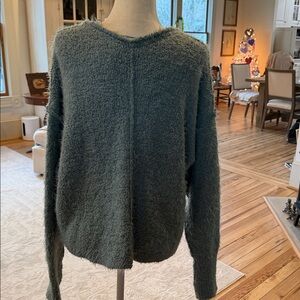 Free People Fuzzy V-Neck Sweater in Spring mist. Oversized XS!