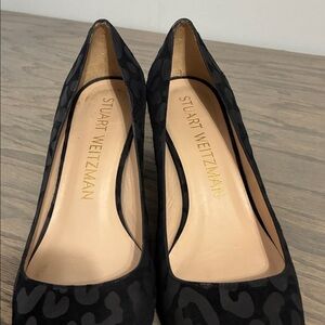 Stuart Weitzman JULIETTE Black Square Toe Suede Block Heels size 9