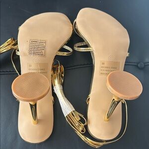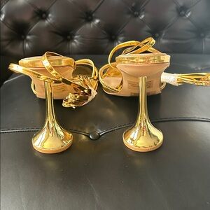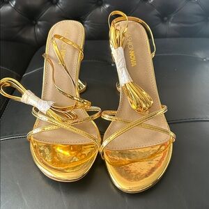 Brand New, Never Used. Shine with these stunning gold strappy heels. Perfect for elevating any outfit.