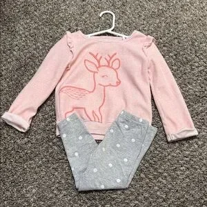Pink Deer Sweater and Gray Polka Dot Leggings Set 24 month