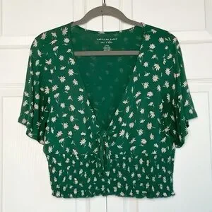 American Eagle Green Floral Crop Top
