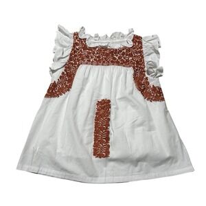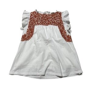 J. Marie Women's Ruffled Cap Sleeve Embroidered Floral Blouse Top White Orange M