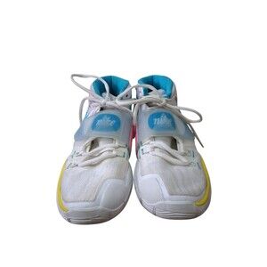 The Nike Kyrie 6 Size 6.5 Youth Neon Graffiti Basketball Sneaker Shoes BQ5599-101 are stylish athletic footwear designed for boys who enjoy basketball. These sneakers feature a vibrant blue color with a neon theme, adding a fun and trendy touch to the overall design. The Nike Kyrie 6 model ensures quality and performance on the basketball court, making them a great choice for young athletes looking to elevate their game.