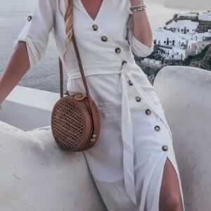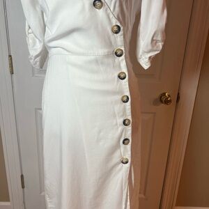 Zara TRF Collection Women's Size XS White Button Front Midi Dress Lyocell