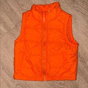 Vibrant orange vest. Sleeveless design. Lightweight and comfortable.