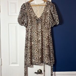 NEW Wayf Leopard Print Puff Sleeve Dress