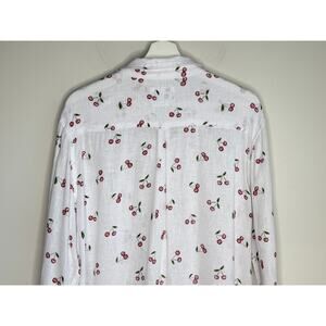 Rails Charli Linen Blend Cherry Print Long Sleeve Button-Up Shirt White Womens L