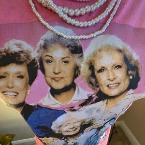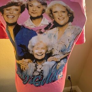 Bright pink t-shirt featuring a fun graphic design. “Stay Golden” 👵👵👵