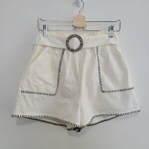 NWT EB LUXE Women’s Chic Belted Shorts Linen Mix White Size M