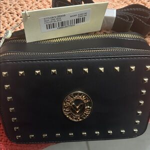 Stylish black crossbody bag with studded details, perfect for any occasion.