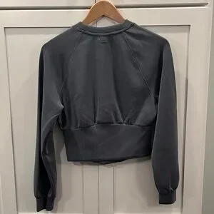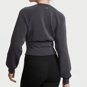 Worn 1x Victorias Secret VSX Featherweight Corset Crewneck Womns Gray Sweatshirt