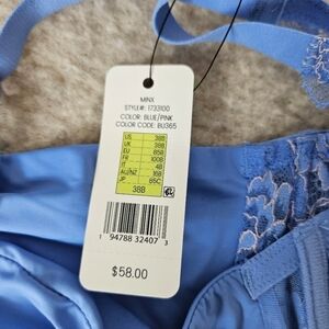 (NEW) Skarlett Blue Lace Unlined Minx Underwire Balconette Bra Size 38B