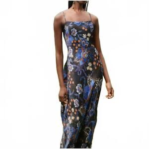 NEW FARM RIO snakes bouquet slip maxi dress in black