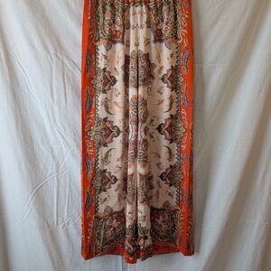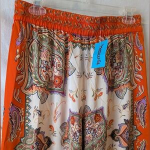 RACHEL ZOE Satin Wide Leg Pants Small White Orange Pattern Pull On Pants NEW WITH TAGS