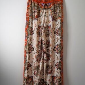 RACHEL ZOE White Orange Satin Wide Leg Pants Small New