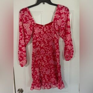 Sim & Sam Red Ditsy Floral Peasant Pullover Dress Valentine’s Day Small