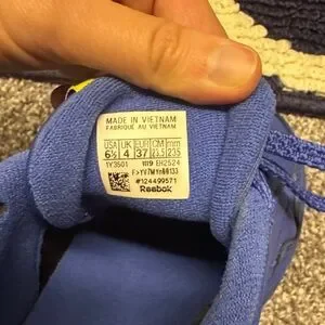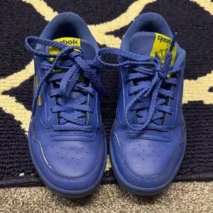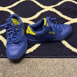 Stylish Classic Reebok sneakers in blue with vibrant yellow highlights. Perfect for casual outings. In very good condition with minor signs of wear please see photos.