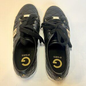 G By Guess Quilted Lace Up Sneakers Women's Size 6.5 Black Leather. Condition is Pre-owned.