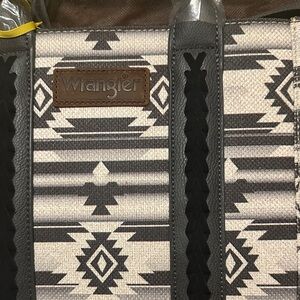 Wrangler purse with extra strap to wear it crossbody or on your shoulder. Gray and black detailing. Dust bag included!