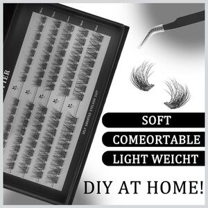 Wispy Lash Clusters Kit, 80 Pcs Individual Eyelash Clusters (10-18mm C Curl) - DIY Lash Extension Kit with Lash Glue, Sealant & Tweezers, Natural Fluffy Fake Lashes for Home Use, Beginners Friendly
