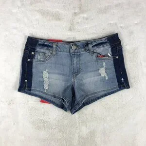 CELEBRITY PINK Colorblock Blue Denim Mini Jean Shorts NWT 3/26