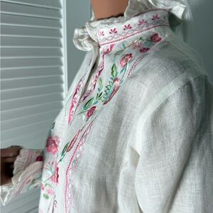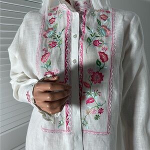 Elegant white blouse with vibrant floral embroidery. Perfect for adding a touch of color to your wardrobe.