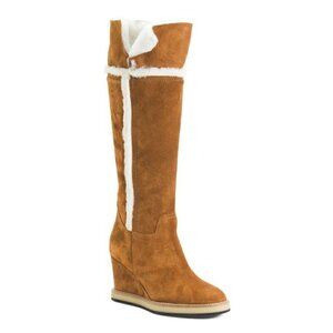 Made In Italy High Suede Shaft Sherpa Cuff Boots