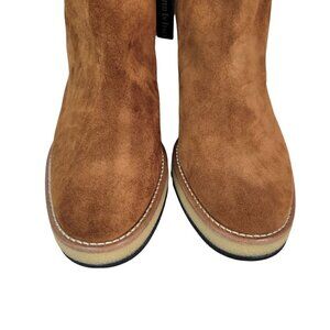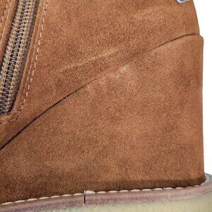 Made In Italy Suede Knee high Tall Long Wedge Heeled Boots Cognac | US 9 EU 39