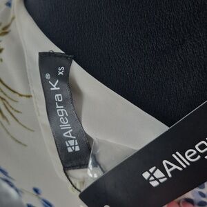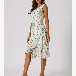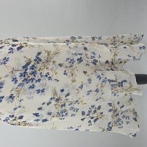 Elegant women's dress featuring a beautiful blue floral pattern on a white background. Perfect for any occasion. NWT AND IN EXCELLENT CONDITION!