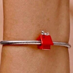 SNOOPY Peanuts S925 Sterling Silver Red Doghouse Charm with Gift Box