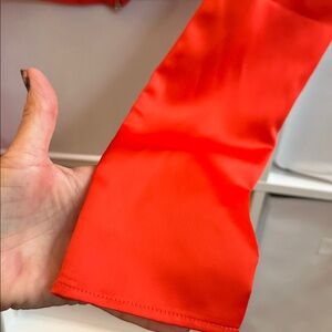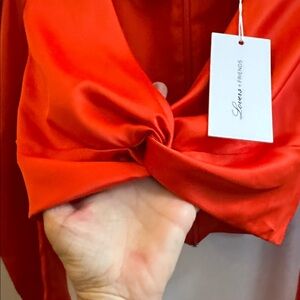 New with the tags lovers + friends size Xxs gorgeous orange back zipper satin feel crop twist front long sleeve puff sleeves size XXs non stretch