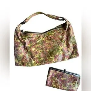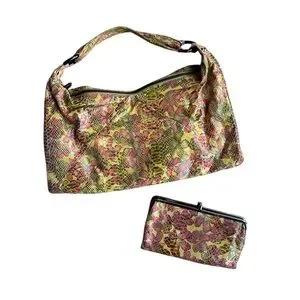 HOBO International Paulette slouchy shoulder bag wallet set yellow floral snakeskin
