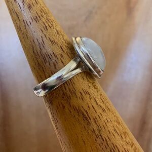 This sterling silver .925 ring, size 7, features a beautiful moonstone gemstone, known for its soft, luminous glow. Set in a sleek and timeless design, it’s perfect for adding a subtle touch of sophistication to any outfit, whether for everyday wear or special occasions.